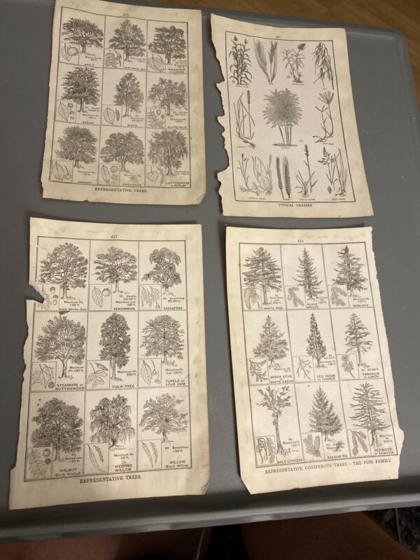 Title (ebay affiliate link): 4 Loose Pages Vintage Dictionary Trees Grasses Conifers Pine Outdoors Nature
