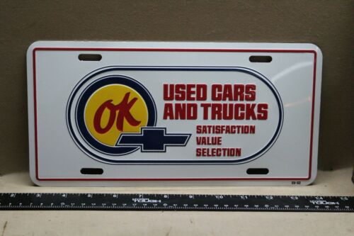 WHITE CHEVROLET OK USED CARS TRUCKS DEALER EMBOSSED METAL LICENSE PLATE SIGN 11
