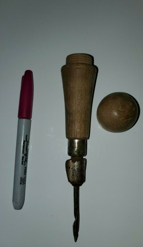 Title (ebay affiliate link): VINTAGE WOOD HANDLE w/ SCREW ON ADJUSTABLE CHUCK BIT HOLDER MANUAL HAND DRILL