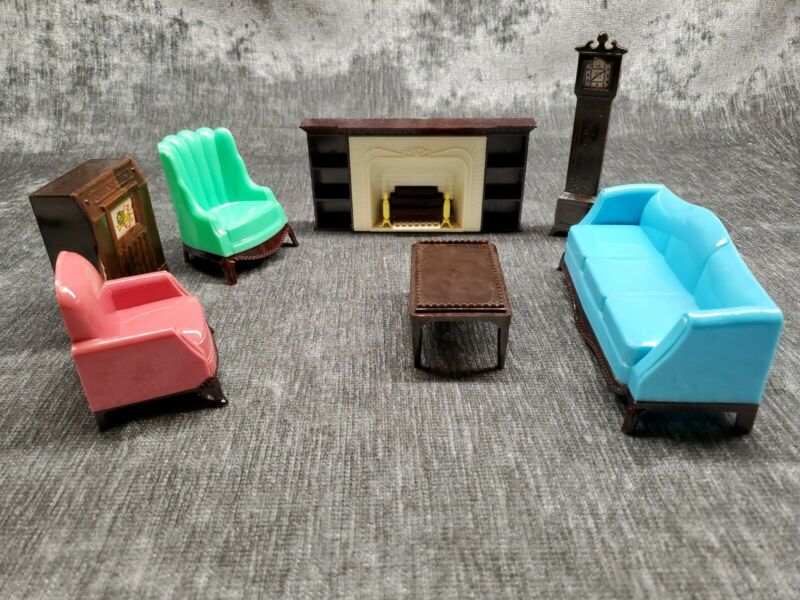 Vintage 7 Piece Plasco Living Room Dollhouse Furniture