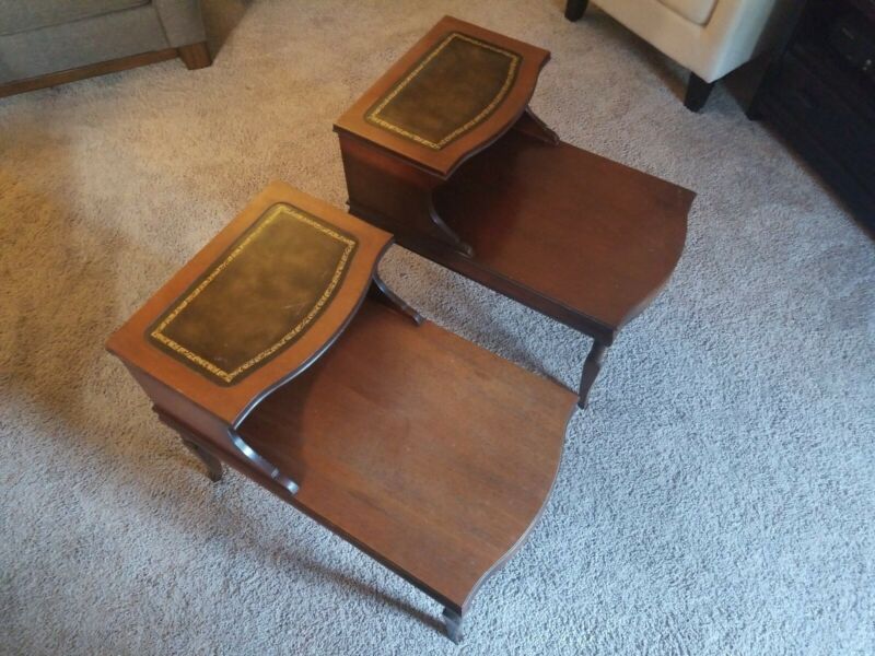 Title (ebay affiliate link): 2 Antique Tiered Leather-Top Mahogony End Tables