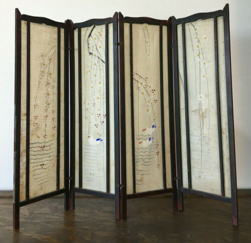 Title (ebay affiliate link): Antique Wood and Painted Fabric Four Fold Doll Screen 16" high