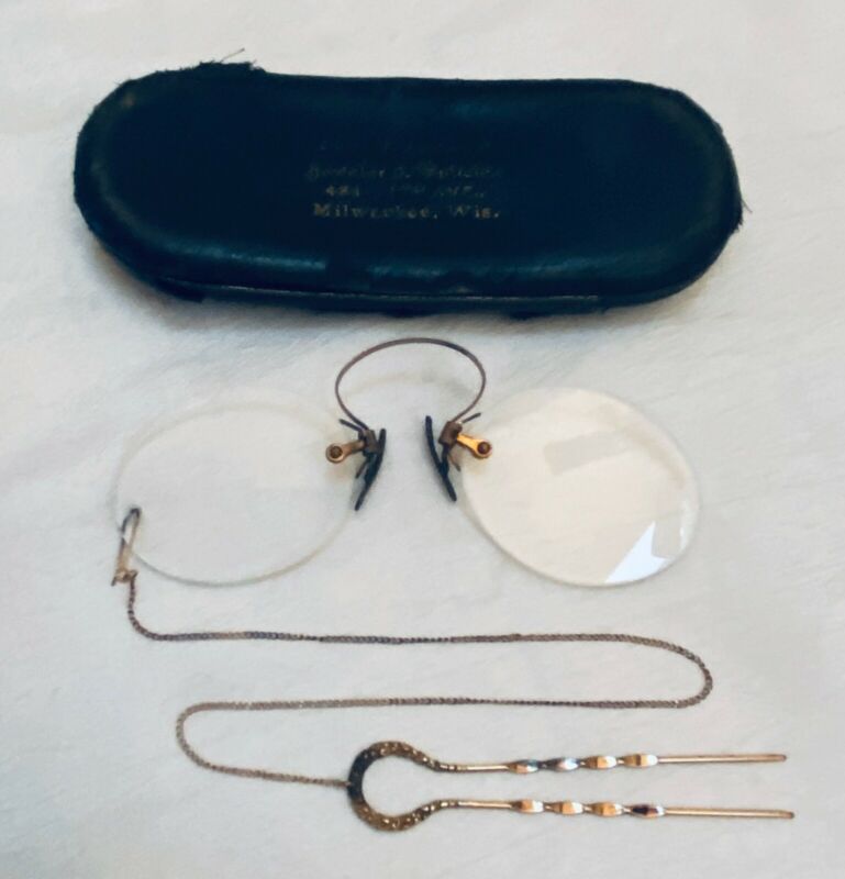 Title (ebay affiliate link): Antique Gold Tone / Filled SPR Bridge PINCE NEZ Lens Spectacles w/ Hairpin Chain