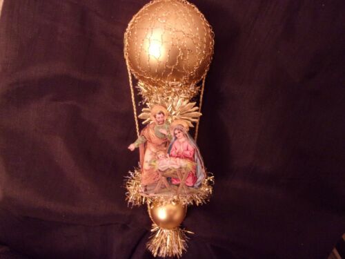 Title (ebay affiliate link): Antique Look Christmas Ornament, BALLOON, NATIVITY SCRAP, Glass, Handmade