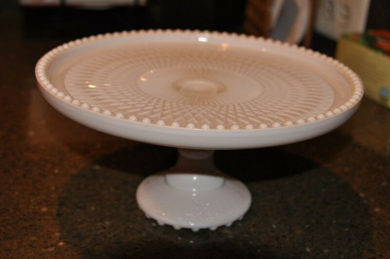 Title (ebay affiliate link): Shell Pink Milk Glass Cake Stand/Plate Jeannette Pedestal Hobnail