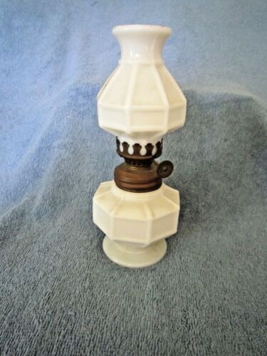 Title (ebay affiliate link): MINIATURE ORIGINAL ANTIQUE MILK GLASS OIL or KEROSENE LAMP with MATCHING SHADE