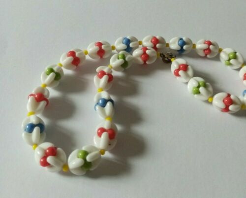 Vintage Jewellery Art Deco Czech Unusual Milk Glass & Multicoloured Necklace