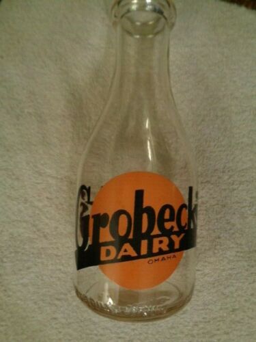 Grobeck''s Dairy One Quart Milk Glass Bottle Omaha Nebraska Advertising Collecta