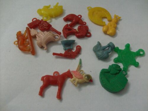 Title (ebay affiliate link): 15 Vintage Plastic Charms - Bubble Gum / Cracker Jack Prizes /or Cereal Premiums