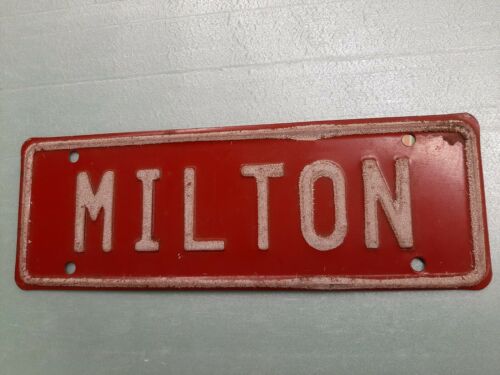Vintage 1950s Milton Embossed Metal License Plate Sign Bicycle Motorcycle Town