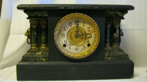 Antique Ingraham Black Mantle Clock - parts or repair