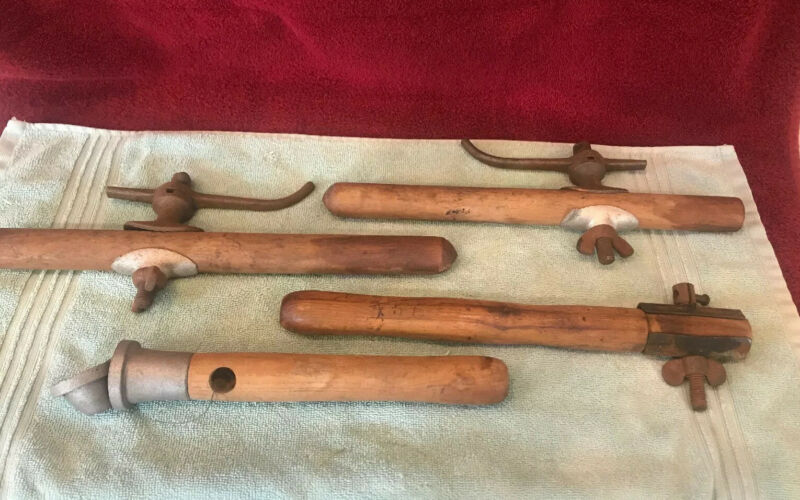 Title (ebay affiliate link): Vintage Lot 4 Wood Handled Implements Tools Cleats Mold (?)