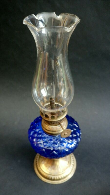 Title (ebay affiliate link): Vintage Blue Glass Paraffin Oil Lamp Huricane Lantern Diamond Pattern & Chimney