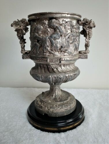 Heavy Embossed Putti/Cherub Urn Style Spelter Drop in 4" Oil Lamp Font Holder.