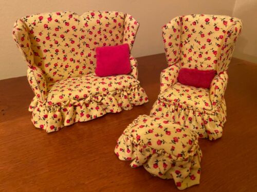 Title (ebay affiliate link): Vintage Miniature Dollhouse Yellow Floral 3-Piece Living Room Furniture Set