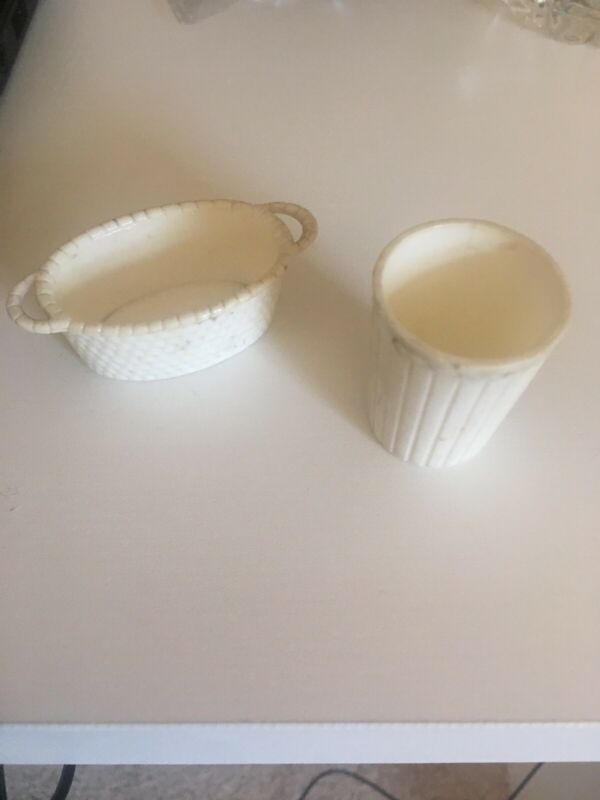 1950s vintage plastic dollhouse furniture wastebasket and clothes basket
