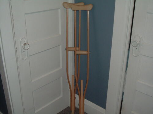Title (ebay affiliate link): Vintage Adult Wooden Crutches, Wing-Nut Adjustments. Light brown Strong