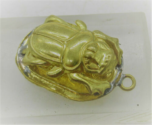 Title (ebay affiliate link): BEAUTIFUL VINTAGE EGYPTIAN GOLD GILDED PENDANT SCARAB SEAL AMULET