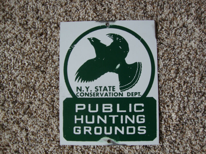 Title (ebay affiliate link): NEW YORK STATE PUBLIC HUNTING GROUNDS PAINTED TIN METAL SIGN FISHING BIRD CAMP