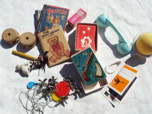 Title (ebay affiliate link): Lot of Vintage Toys 1960''s Rattles/mini books/mini domino set/yo-yo/cards/jacks