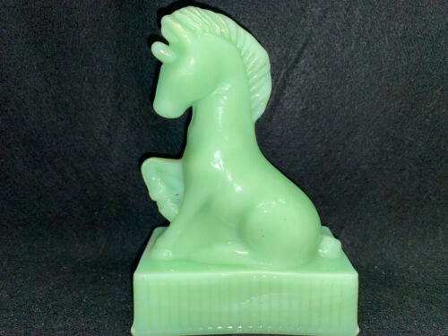 Title (ebay affiliate link): Jadeite green milk glass Unicorn Pony Horse mustang Grecian jade paperweight art