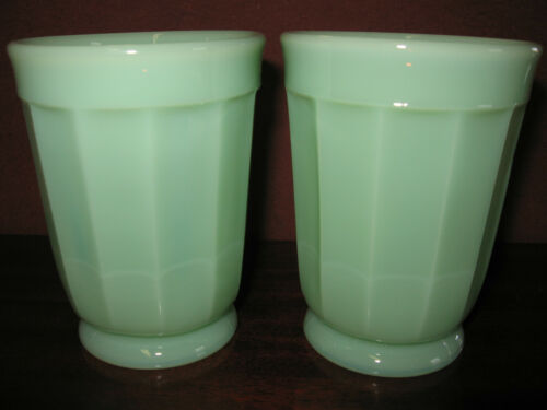 Title (ebay affiliate link): pair of Jadeite green milk glass panel pattern tumbler cup goblet jade water set