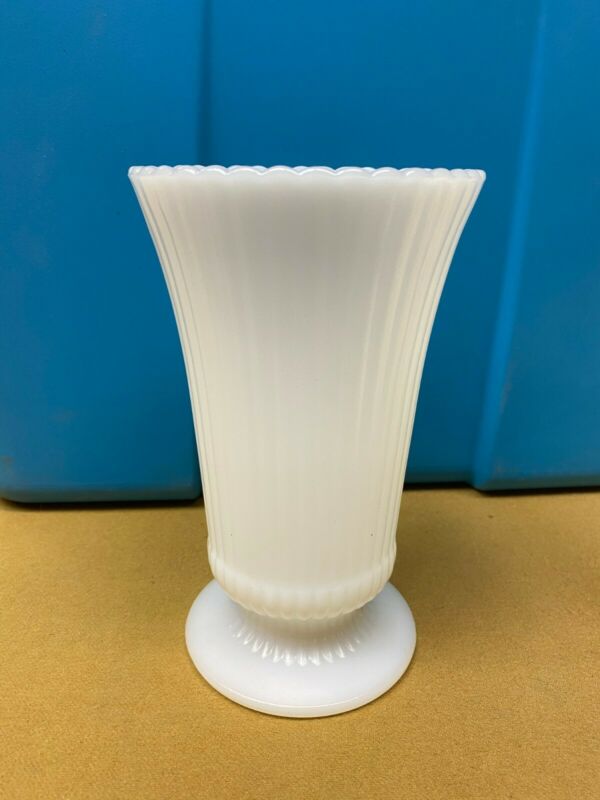 Vintage Footed White Milk Glass Flower Vase 7 3/4" E.O. BRODY CO M5000 Ohio