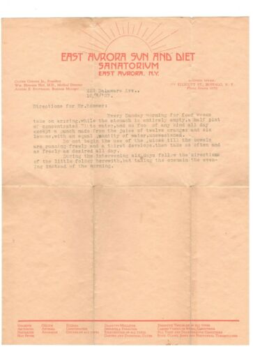 Title (ebay affiliate link): 1927 ADVERTISING LETTERHEAD EAST AURORA SUN & DIET SANATORIUM NY
