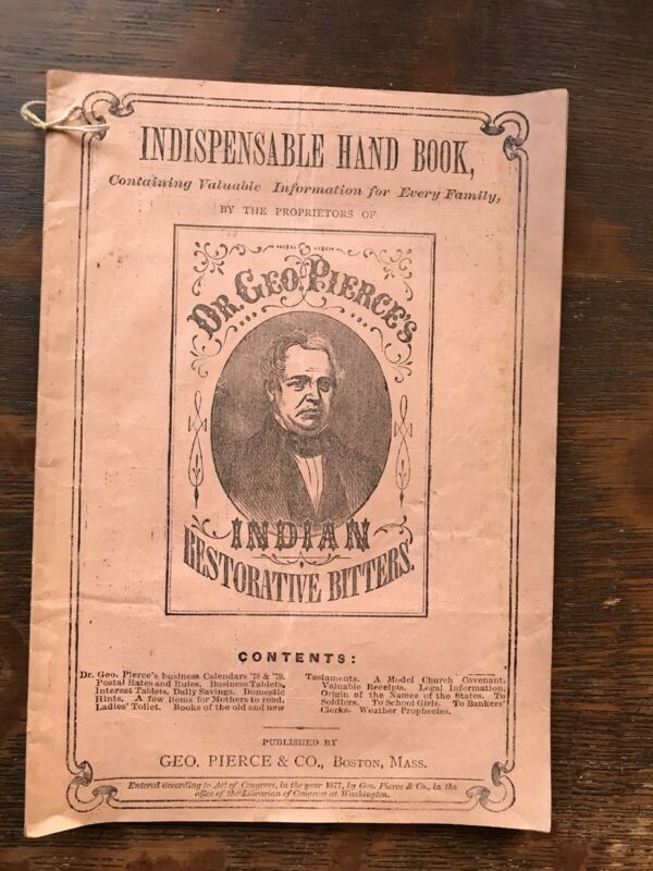 Title (ebay affiliate link): 1878 George PIERCE Indian Restorative Bitters Booklet Quack Medicine Boston MA