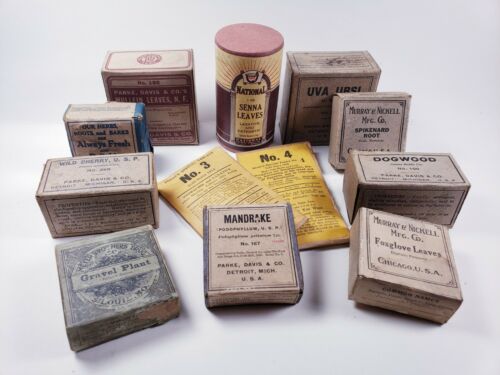 Title (ebay affiliate link): Lot of 12 different antique herbal medicines & remedies. Leaves & roots. Unused.