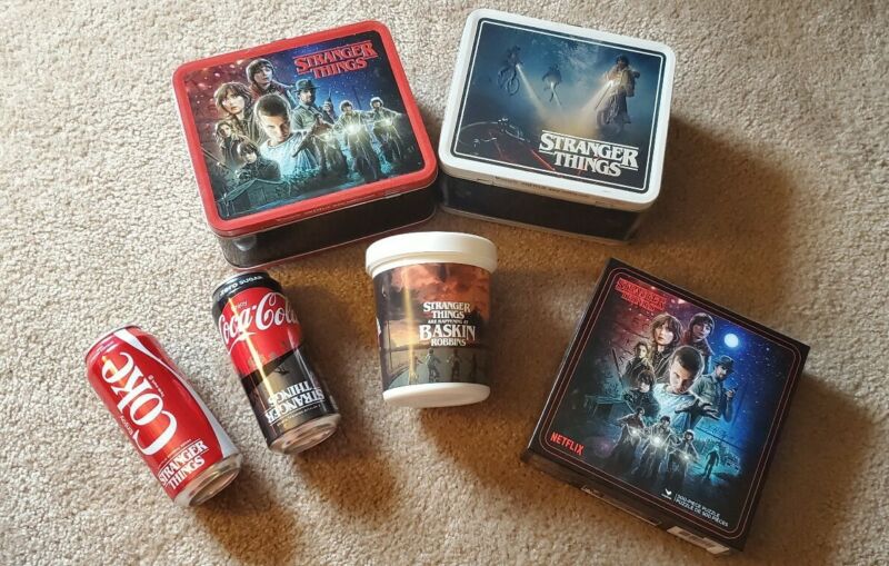 Title (ebay affiliate link): Lot Of Rare Stranger Things Memorabilia!! Lunchboxes, Coke Cans, Puzzles...