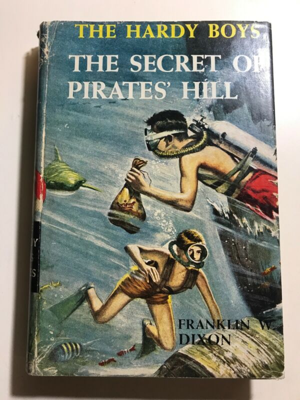 Title (ebay affiliate link): Vintage Hardy Boys Book #36 w/ Dust Jacket SECRET OF PIRATES HILL 1956 Orange EP
