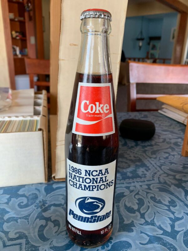 Title (ebay affiliate link): 1986 Penn State NCAA National Champs Joe Paterno Coca-Cola Bottle Coke Unopened