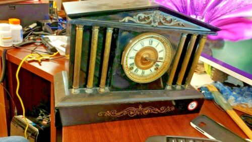 Title (ebay affiliate link): Antique 1894 ANSONIA Iron Mantle Gold Columns Clock w/ Key