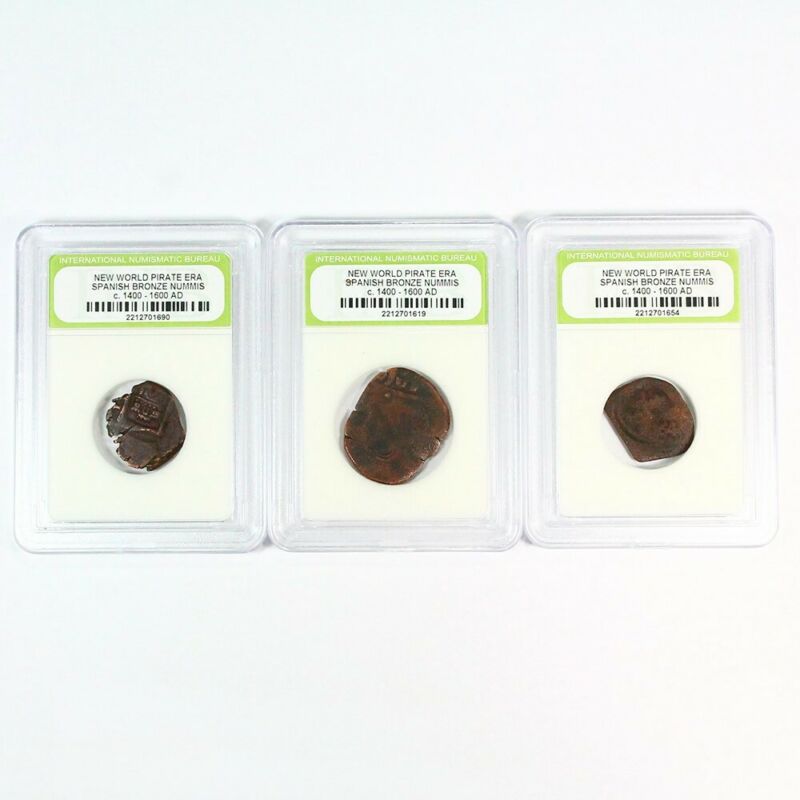 Title (ebay affiliate link): 3 Pirate Era - 1600''s Early America Spanish Bronze Cobs Exact Lot Shown 6653