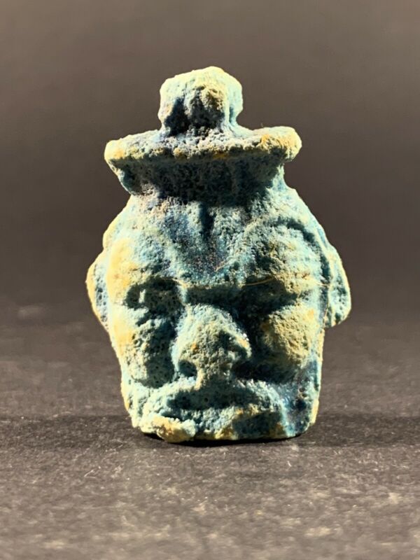 Title (ebay affiliate link): GLAZED ANCIENT EGYPTIAN BES AMULET GOD OF WAR, SEXUALITY, HOME CIRCA 900-600BCE