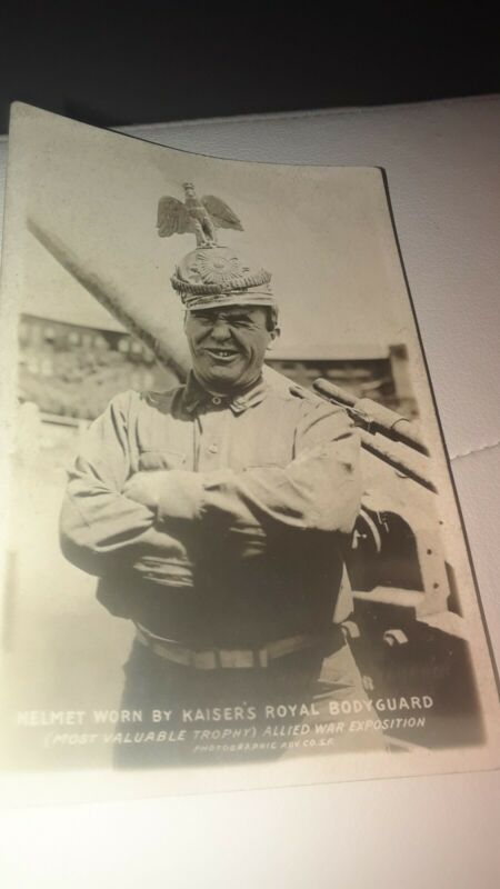 WWI WORLD WAR 1 helmet bodyguard rare ALLIED WAR EXPOSITION RPPC PHOTO POSTCARD