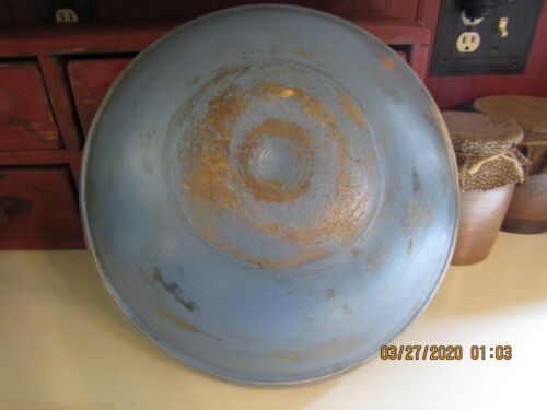 Title (ebay affiliate link): VINTAGE PRIMITIVE FARMHOUSE WOODEN BOWL - 15" DIA W/1 1/4" RAISED RIM-BLUE