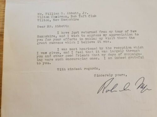 Title (ebay affiliate link): Typed signed letter Robert A. Taft March 1952 NH presidential campaign