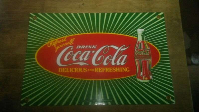 Vintage reproduction coca cola With Sunburst porcelain sign