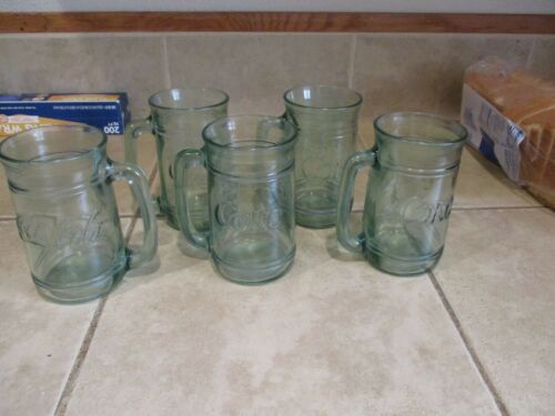 Title (ebay affiliate link): Vintage Coca Cola (5)-D Handle Mugs/ Steins- Green heavy glass ,