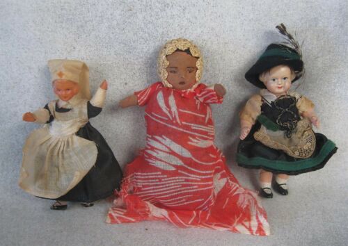 Antique Celluloid jointed Dolls Dressed Nurse Girl Schoberl Becker African baby