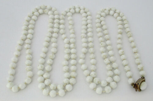Vintage Faceted Milk Glass Bead Necklace 60"