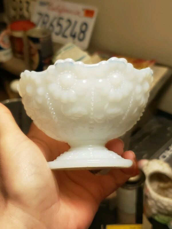 Vintage Milk glass Flower Pattern Pedestal Bowl