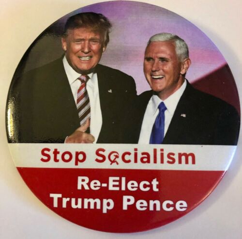 Title (ebay affiliate link): 3" Stop Socialism Re-Elect Trump/Pence Campaign Pinback Button