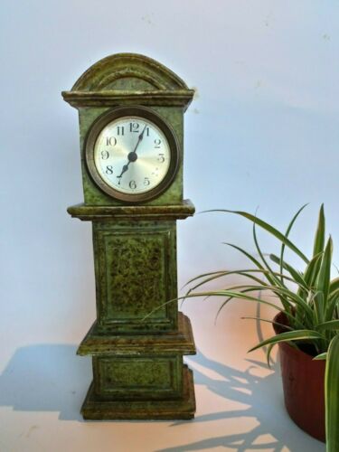 Small 14" Grandfather Clock - Mottled Green - Antique Mechanical Movement