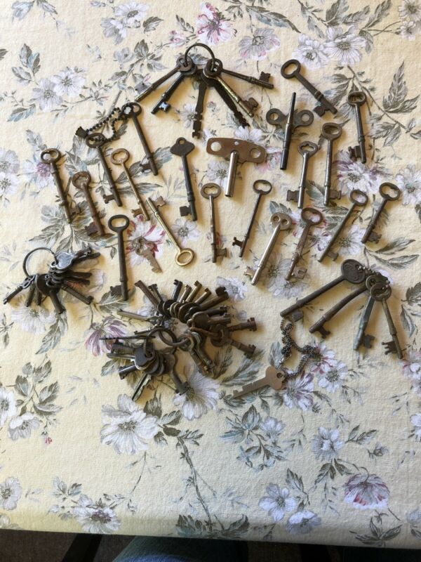 Title (ebay affiliate link): Mixed Lot of 60 + Antique & Vintage Skeleton Clock Keys Barrel Steel & Brass