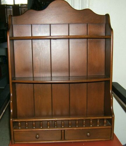 VINTAGE WOOD WALL SHELF KNICK KNACK DISPLAY CABINET WITH DRAWERS WALNUT ?