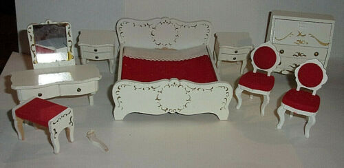 Title (ebay affiliate link): LUNDBY Vintage Dollhouse Furniture 8 Pieces Wooden Rococo Bedroom Set