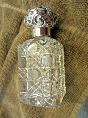 ANTIQUE ENGLISH SCENT BOTTLE REPOUSSESILVER TOP HALLMARKED BIRMINGHAM 1904